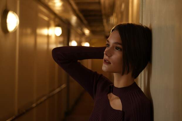 Спокойный портрет в помещении на Sony a7 IV с линзой FE 20-70mm F4 G и настройками фокусного расстояния 70мм, выдержки ⅛- секунды, диафрагмы 4 и ISO 800
