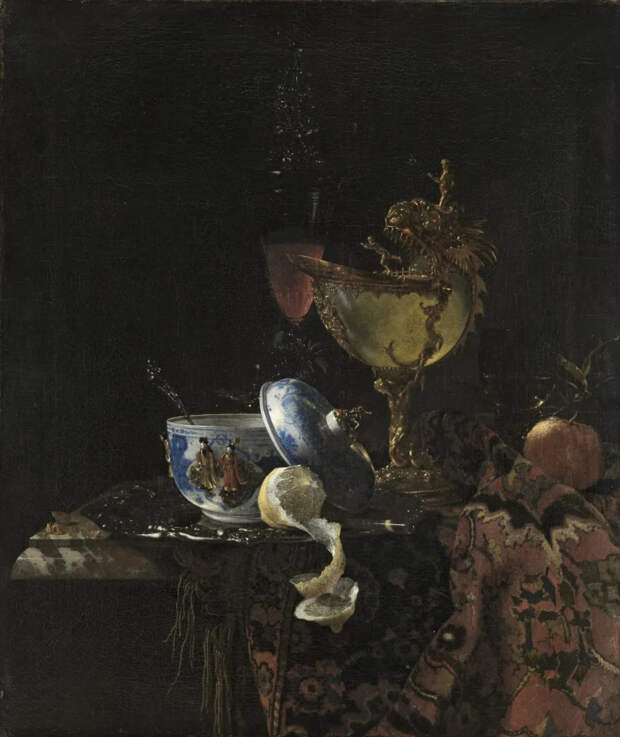 Виллем Кальф — один из самых знаменитых, востребованных и успешных натюрмортистов XVII века — родился в 1619 году в семье процветавшего торговца тканями в Роттердаме. О его ранних годах известно немногое, но в 1630-х годах он вместе с другими фламандскими художниками проживал в парижском квартале Сен-Жермен-де-Пре. Именно там он начал писать натюрморты.