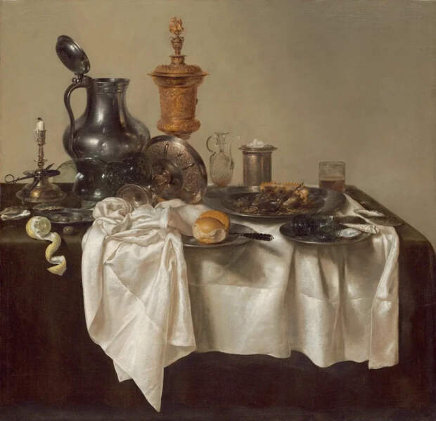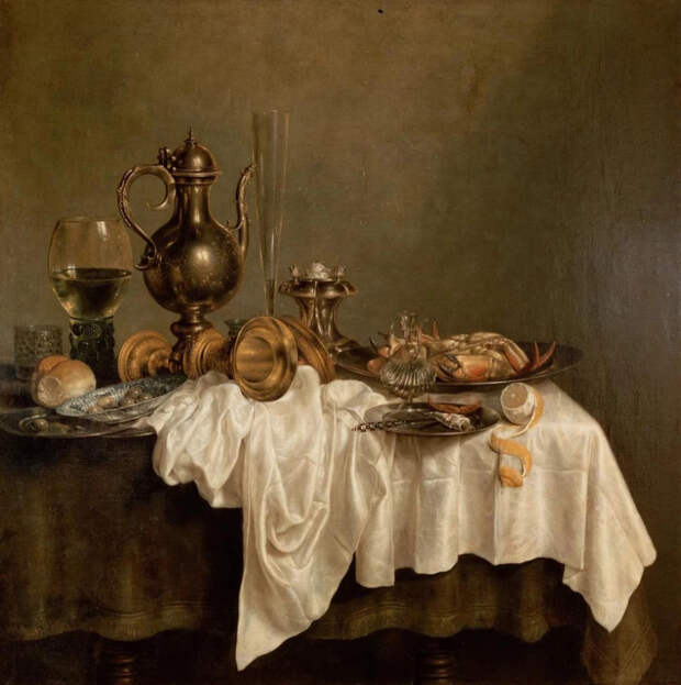 Виллем Клас Хеда, родившийся в 1594 году в Харлеме, несомненно, был одним из величайших мастеров натюрморта. В начале карьеры он специализировался на «ванитас» (vanitas, буквально — «суета, тщеславие»), который восходит к болезненной одержимости смертью в XV веке. Все элементы композиции побуждают нас задуматься об эфемерности жизни и возможности внезапной смерти.
