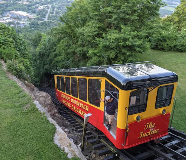 А это еще одна транспортная конструкция с историей. Прогулка на фуникулере, построенном в 1895 году, по остроте ощущений не уступает катанию на экстремальных аттракционах. Вагончик, рассчитанный на 42 пассажира, следует по 835-метровому захватывающему маршруту из Чаттануги Сант-Элмо (штат Теннесси) к вершине горы Лукаут.