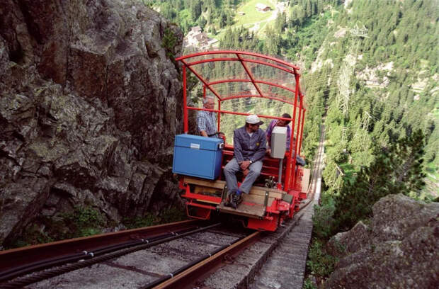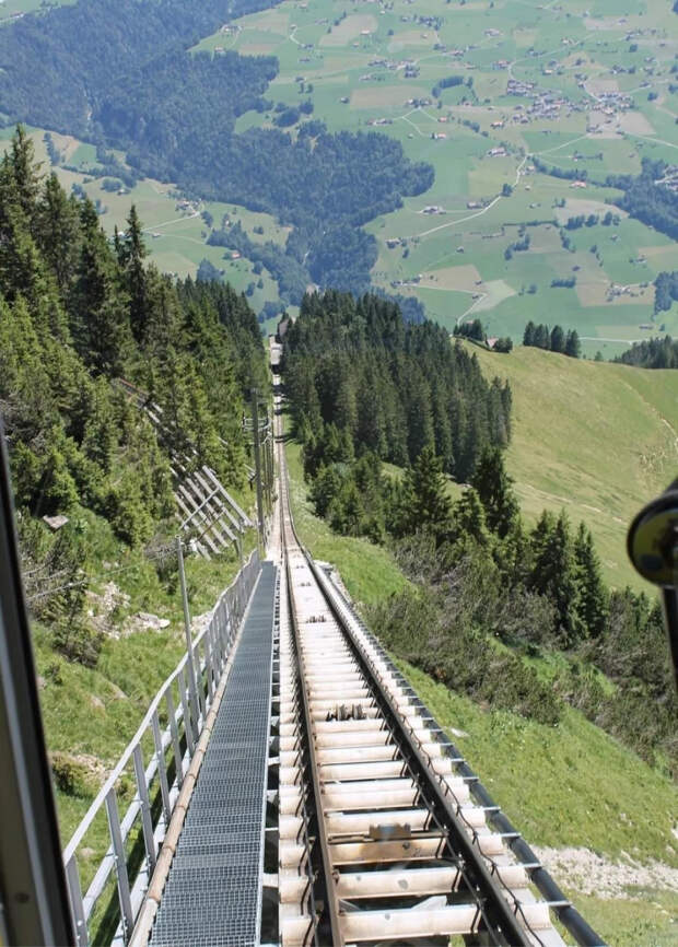 При этом фуникулер – даже по местным, швейцарским меркам – не самый крутой. Угол его наклона составляет 68°. А у превосходящего его по крутости фуникулера под названием «Гельмербан» – 106°.