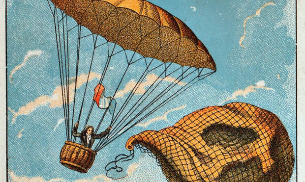 История воздушных шаровВ тот день в ноябре 1783 г., когда Пилатр де Розье и маркиз де Арланд пролетели над Парижем, в толпе нескольких десятков тысяч удивленных французов стоял и юный Андре-Жак Гарнерен (Andre-Jacques Gamerin). Тогда зародившаяся страсть к воздушным полетам его не оставила. Вместе со своим учителем физиком, изобретателем водородного аэростата Жаком Шарлем, он множество раз поднимался в воздух. В конце 1796 г. и в начале 1797 г. в Париже Гарнерен изготовил водородный аэростат и несколько раз его испытал, во-первых, не отпуская веревки, и два раза позволив шару свободно подняться. Во время второго полета он привязал к своей собаке парашют и выбросил животное из корзины. Собака удачно призимлилась. 22 октября 1797 г. Гарнерен созвал сливки Парижа для наблюдения за первым прыжком человека с парашютом. К шару привязали корзину с парашютом. Гарнерен расположился в корзине и шар поднялся на высоту 200 сажень (400 метров). В 17 час. 29 мин. Гарнерен обрезал связывающие веревки. Растерявшиеся зрители наблюдали за тем, как корзина вращалась в воздухе, и уже никто не надеялся, что Гарнерен останется жив. Однако храбрецу был диагностирован простой вывих кости, которую он вывихнул при ударе о землю.21 ноября 1783 года первыми на воздушном шаре поднялись Пилатр де Розье и маркиз де Арланд