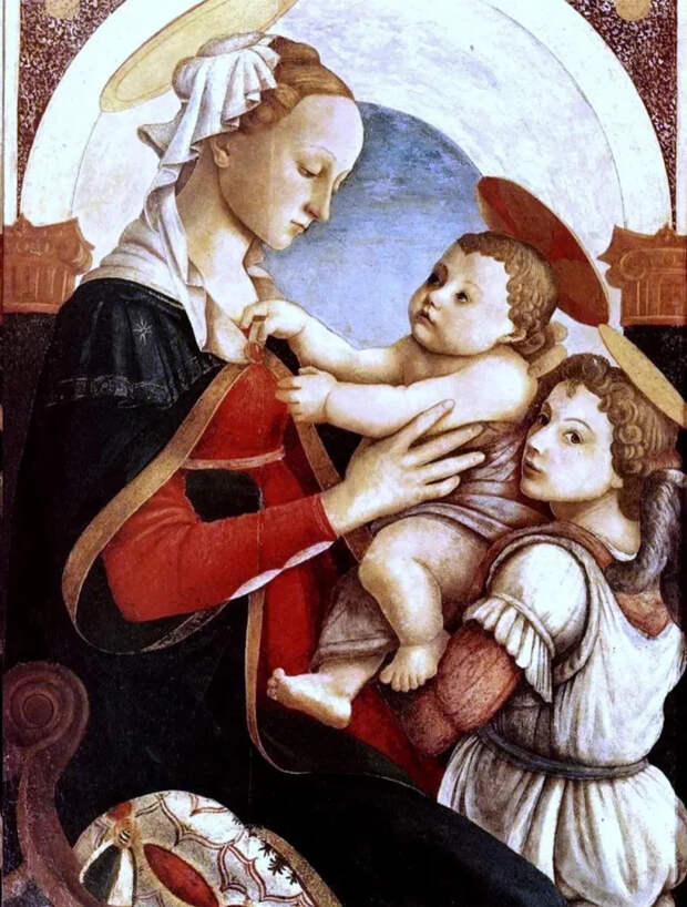 Один из лучших художников кватроченто фра Филиппо Липпи, он же «монах-сластолюбец» с авантюрной биографией, был учителем Боттичелли. Незадолго до того, как Липпи навсегда покинул стены кармелитского монастыря, в котором воспитывался с восьми лет и стал не только монахом, но и великим художником, в его мастерскую около 1464 года пришел Сандро Боттиччели. Известно, что веселый и жизнерадостный фра Филиппо сразу полюбил своего нового ученика, который подражал своему учителю в своих работах, копируя сюжеты, что особенно видно на картинах «Мадонна с Младенцем и ангелами».
