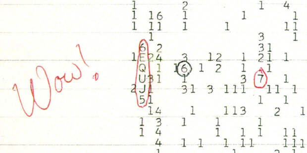 В 1977 году радиотелескоп «Большое ухо» в Университете штата Огайо зафиксировал странный сигнал. Он пришёл на Землю со стороны созвездия Стрельца, был необычайно сильным и длился больше минуты. Астроном Джерри Эман первым обнаружил аномалии в распечатке сигнала и настолько удивился, что обвёл его на бумаге красной ручкой, подписав “Wow!”.